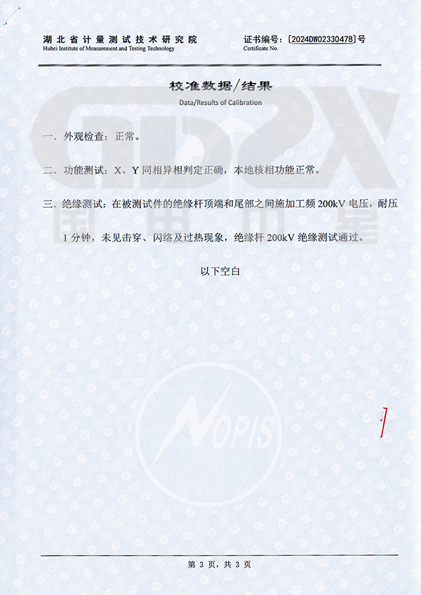 11、標配絕緣桿長度為3米,絕緣桿適用電壓等級≤220KV。