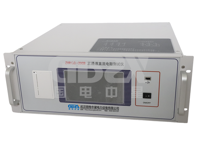 ZXR(J)-20CB三通道直流電阻測試儀能有效發現變壓器線圈的選材、焊接、連接部位松動、缺股、斷線等制造缺陷和運行后存在的隱患。為滿足變壓器直流電阻快速測量的需要,我公司研制了集三相同測試、助磁功能、消磁功能于一體的三通道直流電阻測試儀。該儀器是實現了三相同時加電,獨立電流采樣、電壓采樣,同時測量并顯示三相電阻值和三相不平衡率的功能,大大縮短了變壓器直流電阻的測試時間,解決了電力變壓器各分接繞組直流電阻測試耗時長的問題。